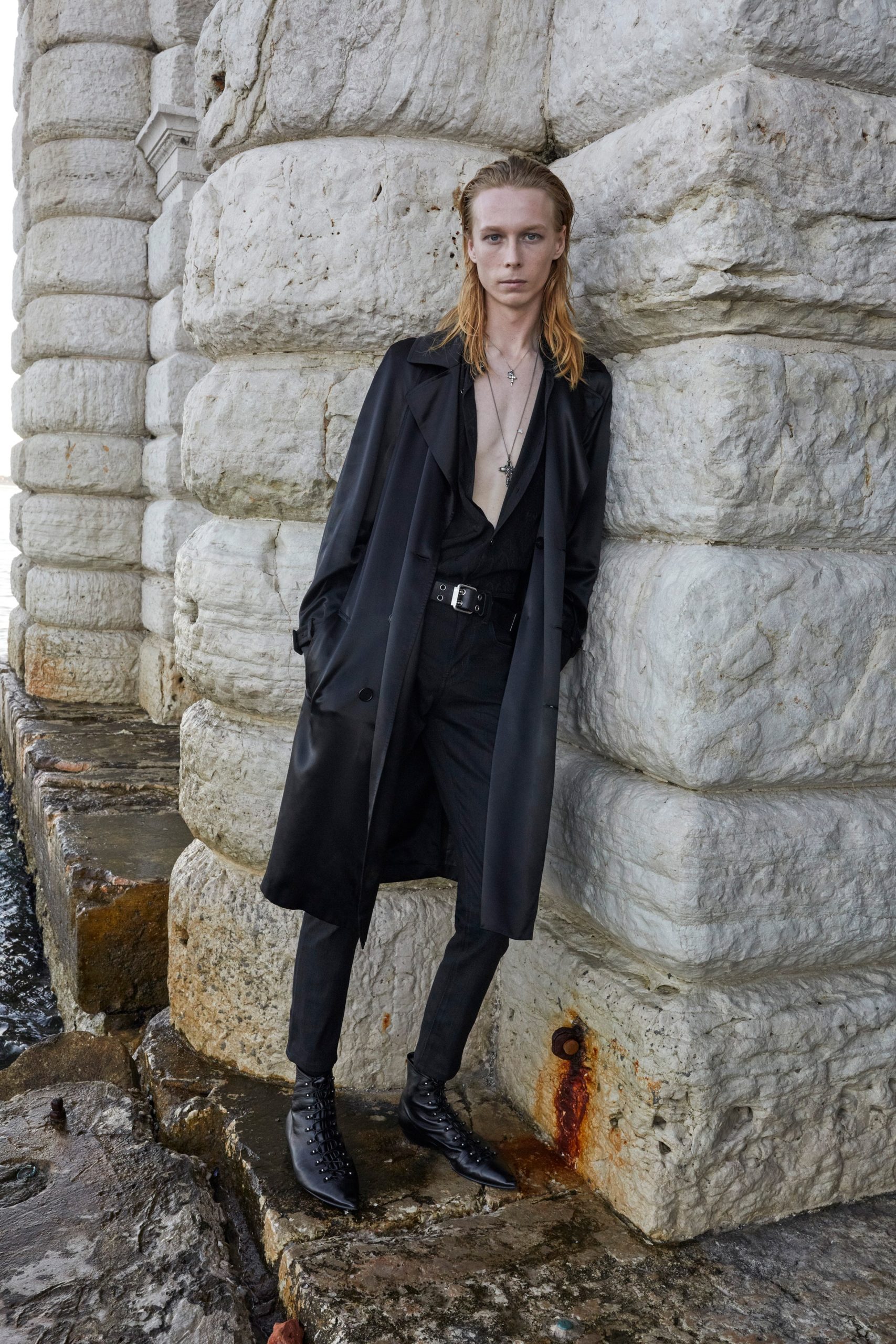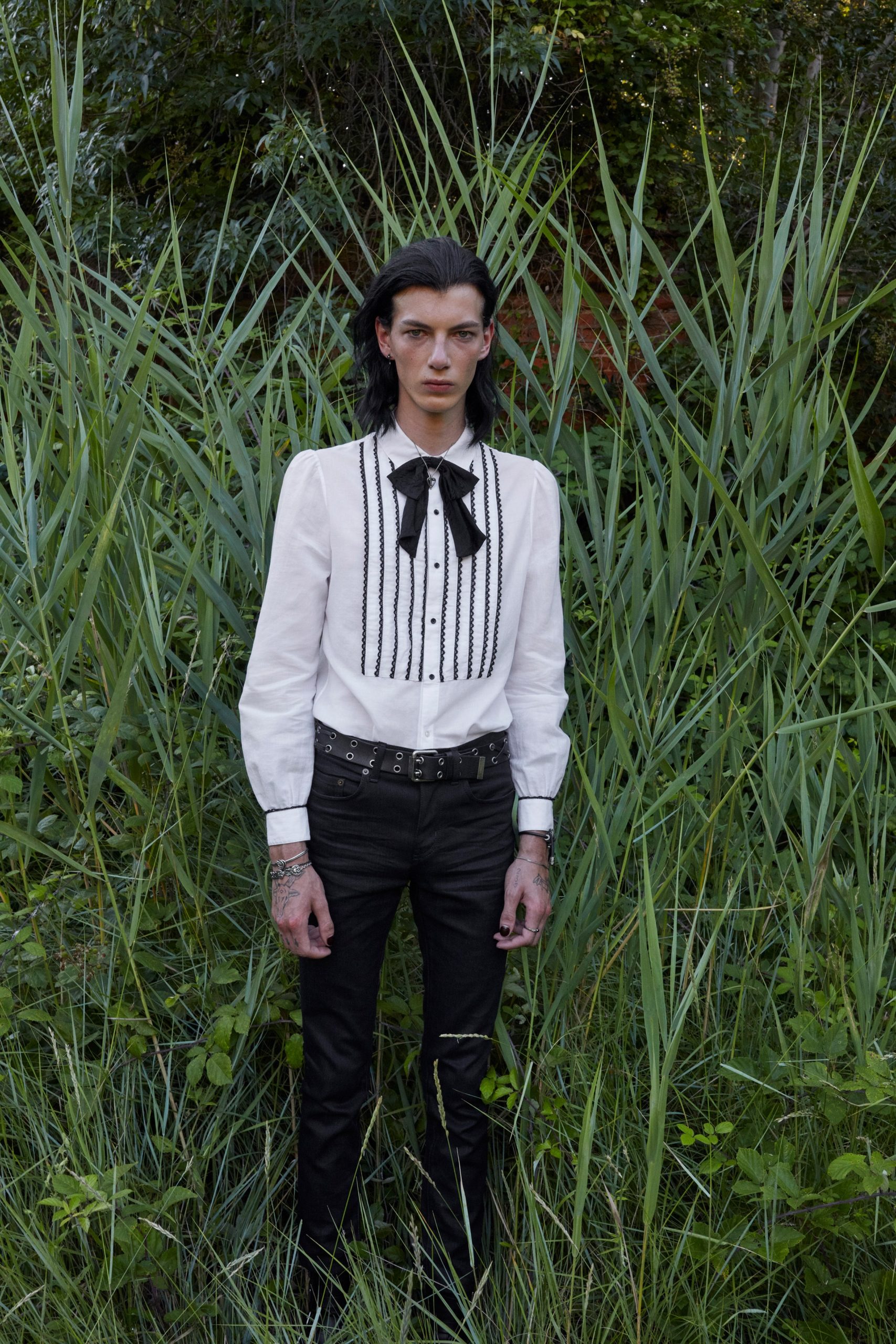 مستوحاة من الهندسة المعمارية في البندقية و جائحة كوفيد 19 اراد المدير الفني لدار ايف سان لوران فاكاريللو اظهار مجموعة ربيع 2021/2022 مع التركيز على قصات مستوحاة من اوائل ثمانينات القرن الماضي , مجموعة مليئة بالبدلات المصنوعة من الكريب و قمصان الشيفون و بطال ذات خصر عالي